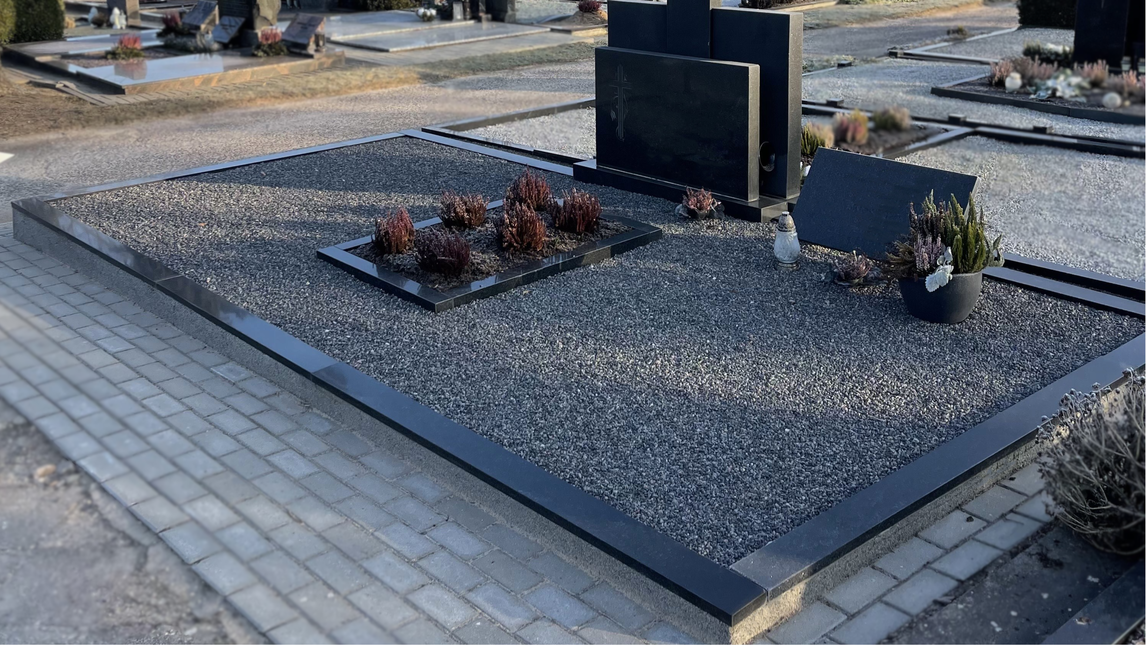 Dengiame kapavietes natūralaus granito plokštėmis. Tai ilgaamžis, estetiškas ir priežiūros nereikalaujantis sprendimas. Granito plokštės apsaugo nuo piktžolių, drėgmės bei padeda išlaikyti tvarkingą kapavietės vaizdą daugelį metų.